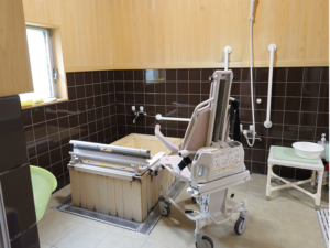 また、一期一会にある3つのデイサービスのなかで唯一リフト浴がある事業所になります。身体状況の変化に応じて柔軟に対応させていただき、安全に入浴サービスを提供することができます。