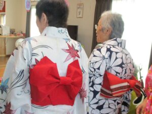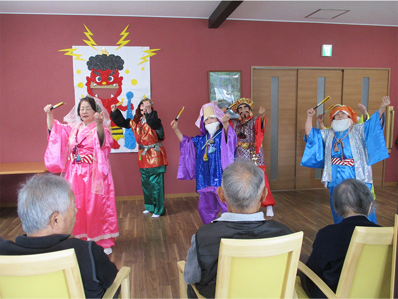「桜が見たい。」「お寿司を食べたい。」「誰かの役に立ちたい。」「踊りを見てみたい。」そんなご利用者の方々のささやかな夢を実現するために、季節ごとのイベントや行事を企画しています。またお誕生日には、 お誕生日会を開催し、『おめでとう』 と書かれたメッセージローズと記念写真をお贈りしています。 (メッセージローズは、アエルカフェで購入できます。)