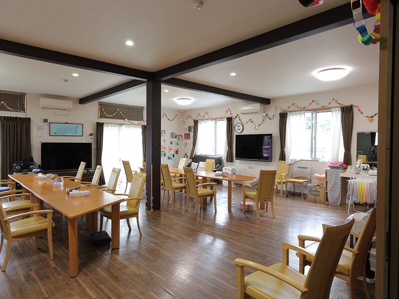 平成28年4月にOPENしました。18名定員ですが、20名以上の方も利用できる活動スペースを設けています。また、個浴にリフトを設置しているので、お身体の状態が変わっても入浴しやすい環境です。もちろん、運動機器も豊富に取り揃えています。