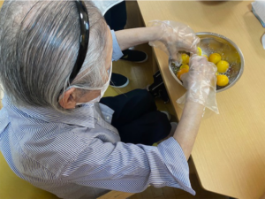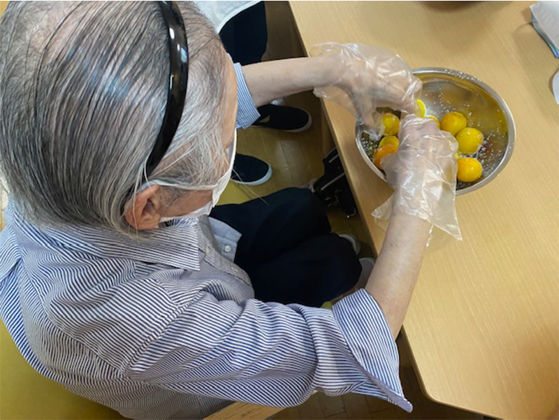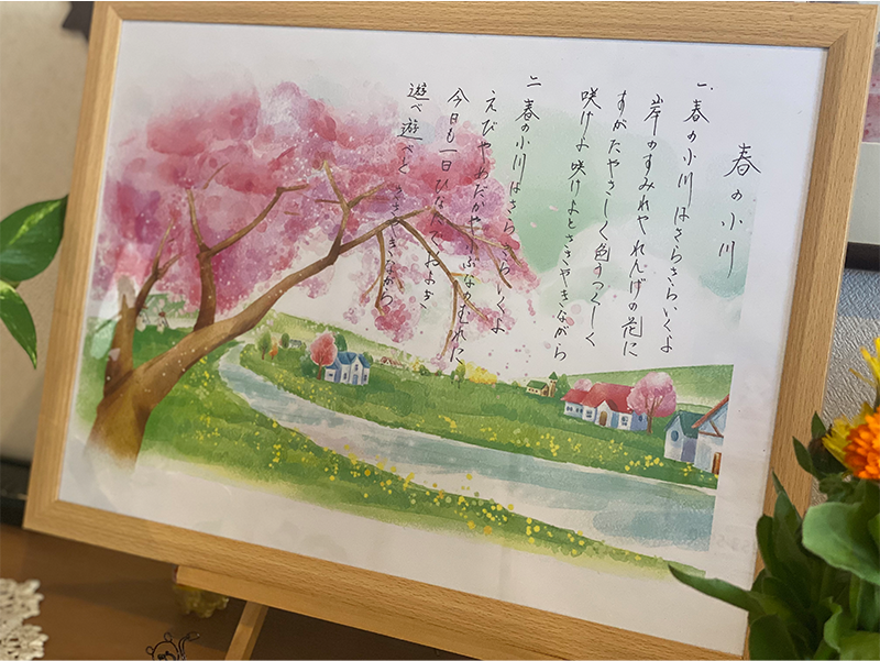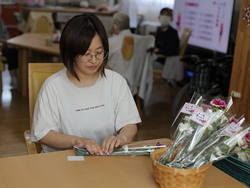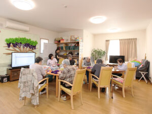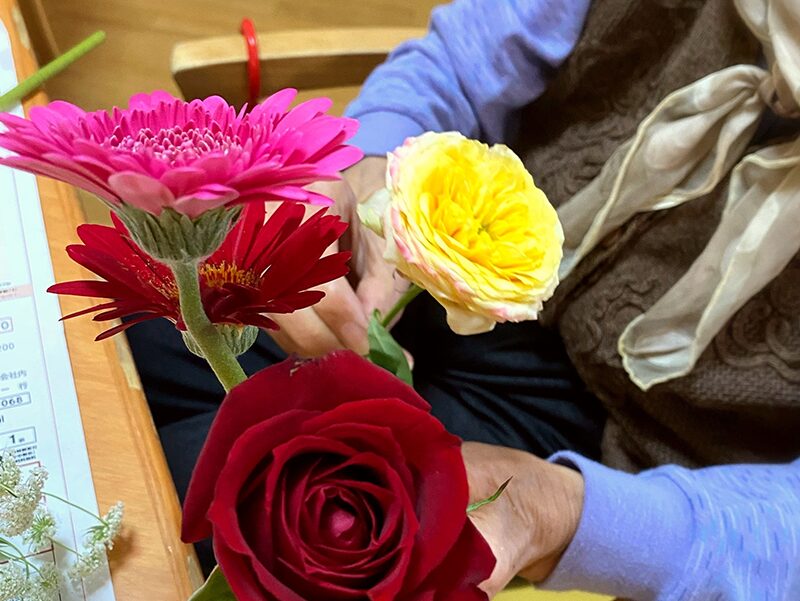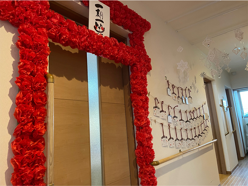 年を重ね外出の機会が減っていくと、生活が単調になりがちとなってしまいます。季節感なく漫然と毎日を過ごすのではなく、季節ごとに日々を味わいながら過ごすことが QOL を高めることに繋がると考えています。毎月の行事レクリエーションはもちろんのこと、壁面装飾の作品作りやフロアに飾る花々、昼食に提供する旬の食材など、様々なものを通して季節を感じて頂けるよう工夫しています。