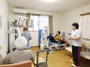 住み慣れた地域や自宅でいつまでも暮らしたい、といったご利用者様のニーズに合わせて、作業療法士・介護福祉士・看護師が連携し、充実したサービスを提供しています。日常生活にかかわる機能回復や維持のための訓練だけではなく、環境調整・福祉用具の適合、認知症や精神面への対応、ご家族へのアドバイスなど、生活全般を捉えたサポートを実施しています。
