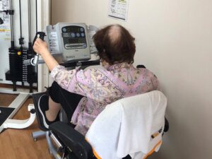 具体的な機能訓練内容として、パワーリハビリテーション、家事行為訓練(食器洗いや洗濯物干し等)、屋外を想定した段差昇降訓練や障害物移動訓練等を行っています。
