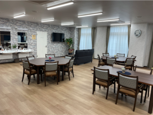 | 看護・機能訓練 | 1Fに訪問看護ステーションがあり、簡易的な健康checkや機能訓練(リハビリ)などについて相談できます。定期的なサポートの必要な場合は、速やかに介護保険サービスの訪問看護へ移行の選択もできます。 |